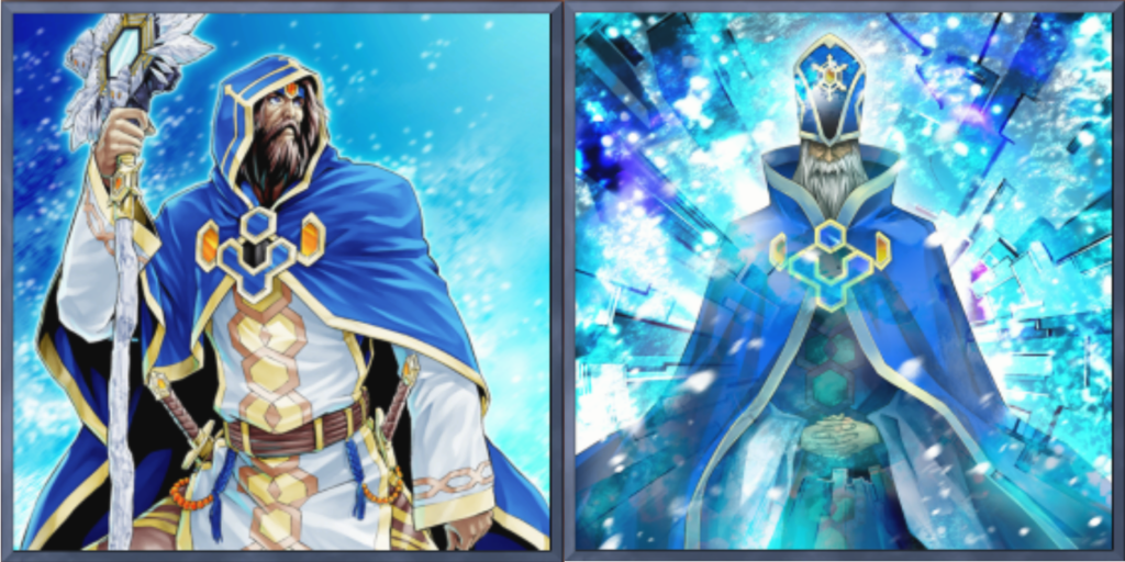 この「鳥人の大英雄」は《氷結界の剣士 ゲオルギアス》を、「封魔の術を極めた大魔導士」は《氷結界の鏡魔師》を指している。